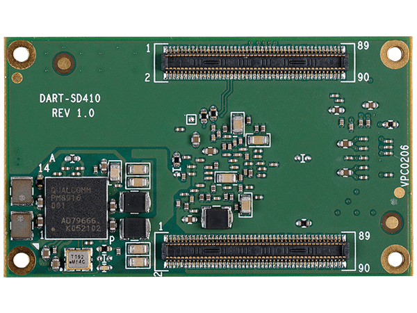 Bringing the Snapdragon™ magic to the embedded market, the DART-SD410 supports the Qualcomm Snapdragon™ 410 (APQ8016) 1.2GHz Quad Cortex-A53 in 64-bit architecture. In an amazing 25mm x 43mm ultra compact size, the DART-SD410 offers a staggering processing power and highly optimized power consumption, ideal for embedded portable devices and battery operated products. High-resolution camera, advanced multimedia support and broad connectivity options are just some of the features that ensure a richer experience in various embedded segments and applications.