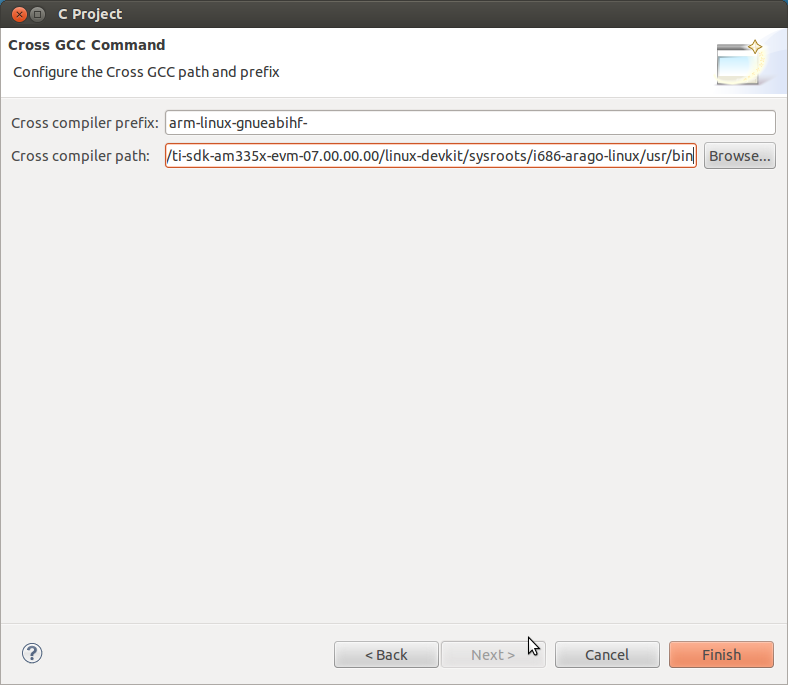 Set the tools path and prefix. Browse to the actual SDK location: