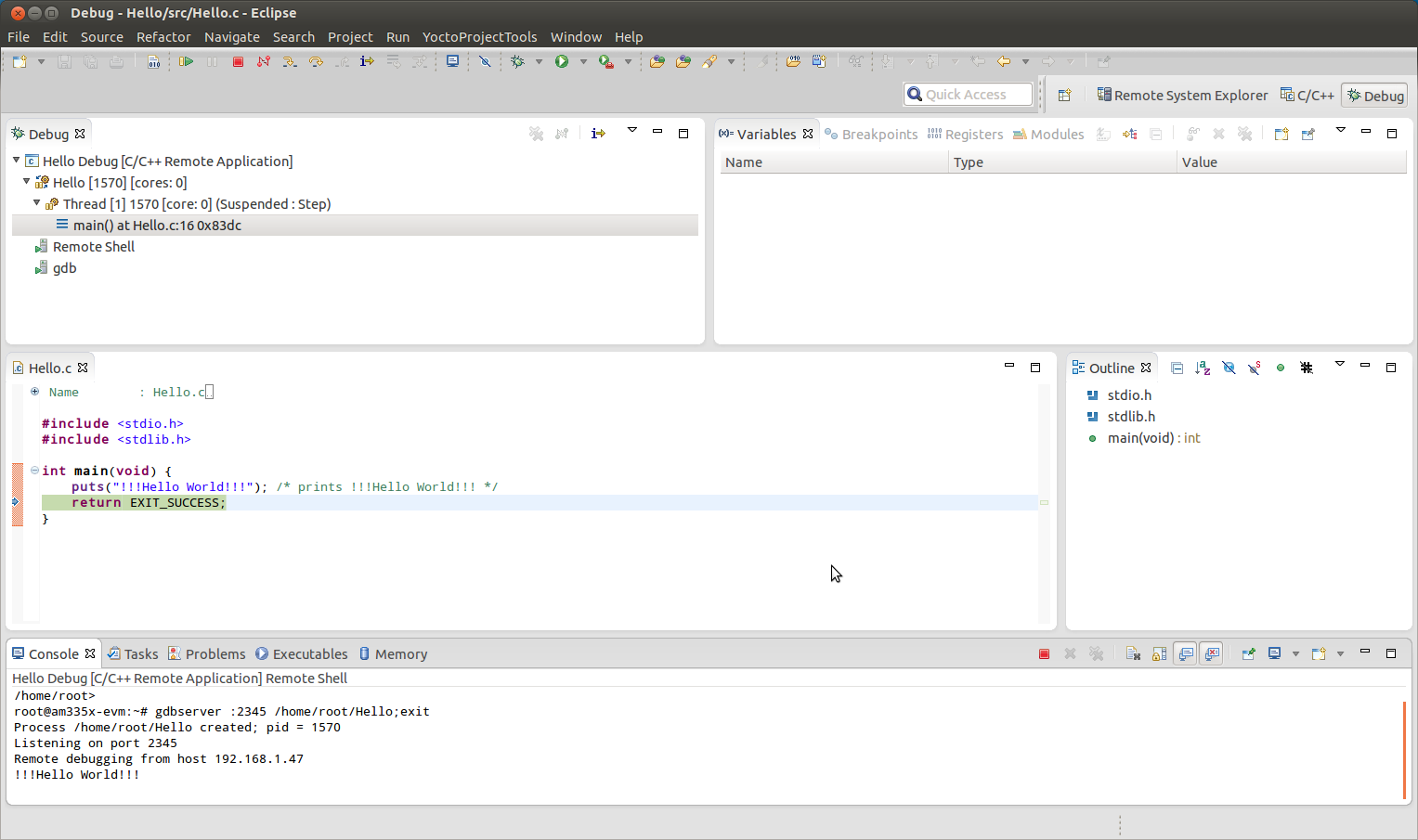 Debug the project on VAR-SOM_AM33 target¶