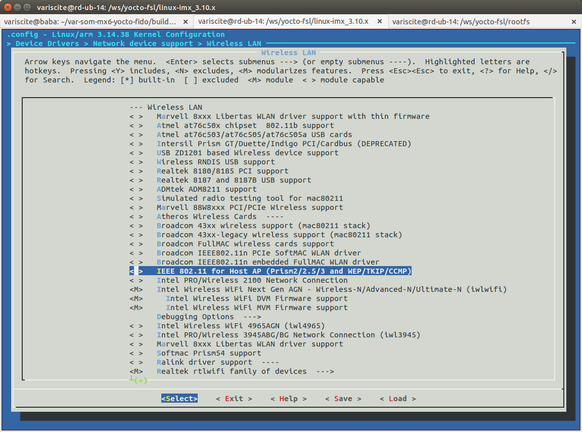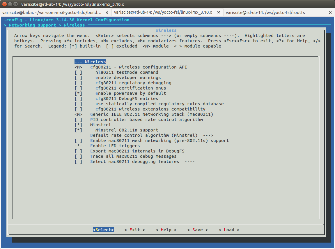 Kernel configuration adding Intel 7260 device driver¶