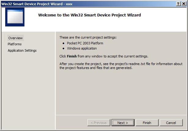 In order to start developing application for Windows CE, developer should create a solution of the appropriate type.