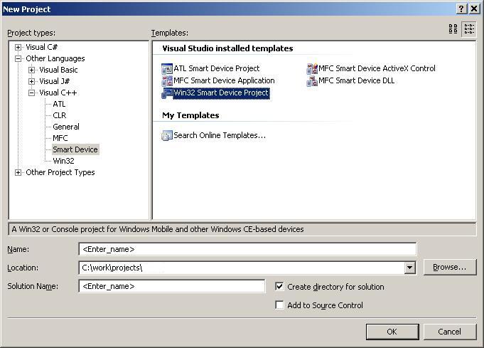 - Choose "Other Languages -> Visual C++ -> Smart Device"